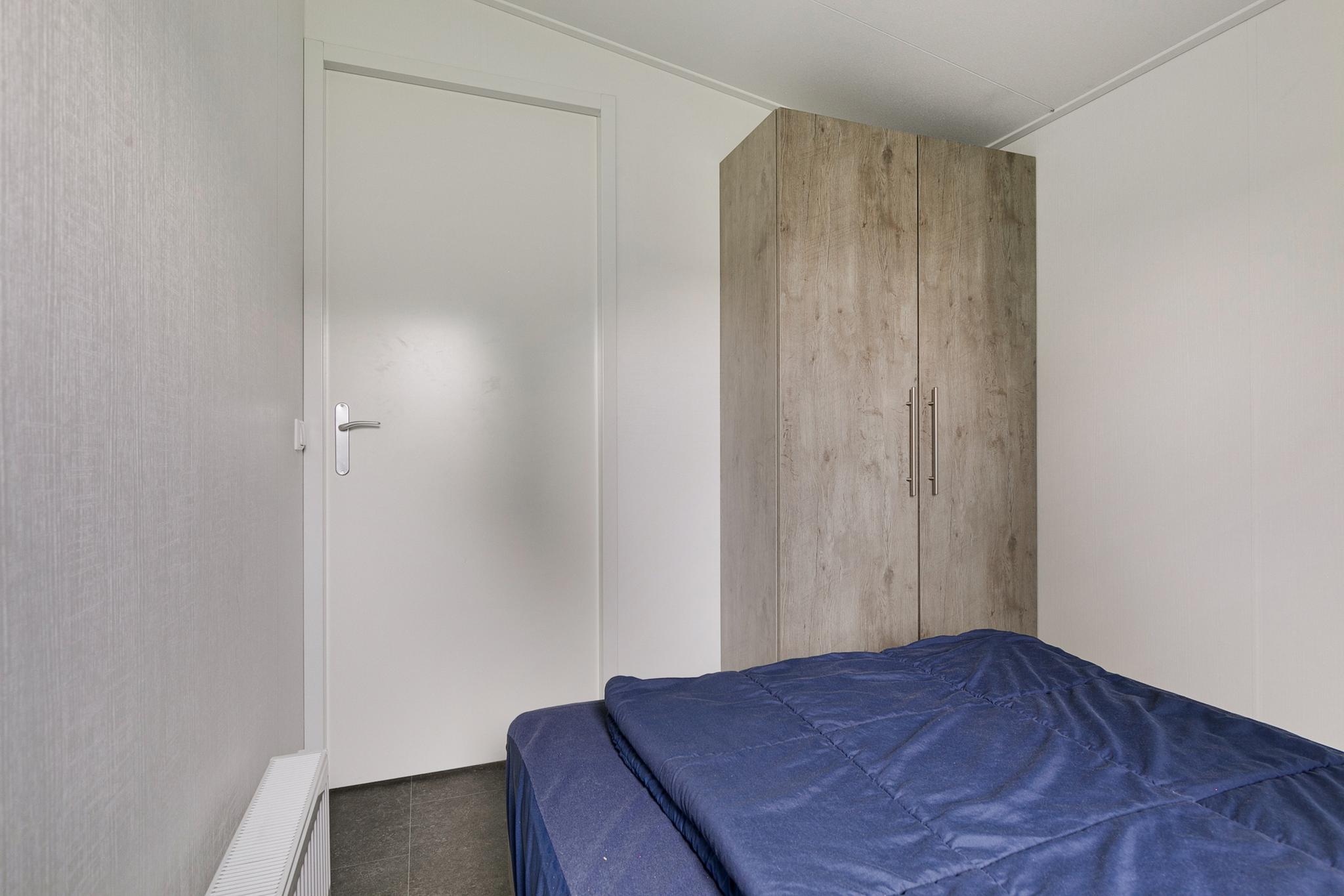 De rechter slaapkamer is de kleinste en is perfect om te gebruiken als 1 persoons (kinder)kamer of in te richten als walk-in closet! De grote kamer aan de linkerzijde biedt voldoende ruimte voor een tweepersoonsbed, nachtkastjes en een grote kledingkast. Aan de overzijde van het chalet bevindt zich de derde slaapkamer. Deze is op dit moment ingericht met een stapelbed, waardoor de ruimte efficiënt wordt benut. Tegenover de slaapkamerdeur is de toegang naar het vrijstaande toilet. Deze is gelegen naast de badkamer, wat prettig is wanneer je met meerdere mensen in de woning verblijft. Het toilet en de badkamer hebben moderne donkergrijze vloertegels. De badkamer is afgewerkt met witte wandtegels, heeft een aansluiting voor een wasmachine en beschikt tevens over een douchecabine, wastafelmeubel met mengkraan en spiegel.